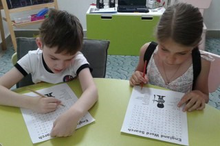 А ребята из старшей группы рисуют символы Англии, Big Ben и телефонную будку.